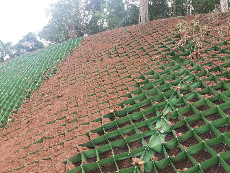 Gracias a su estructura celular estabiliza de forma rápida y eficiente permitiendo la recuperación vegetal de taludes y laderas con tiempo récord, gracias a la revegetalizacion de zonas permite mayor control de taludes, puede ser utilizadas en un suelo de relleno variados para controlar el talud.